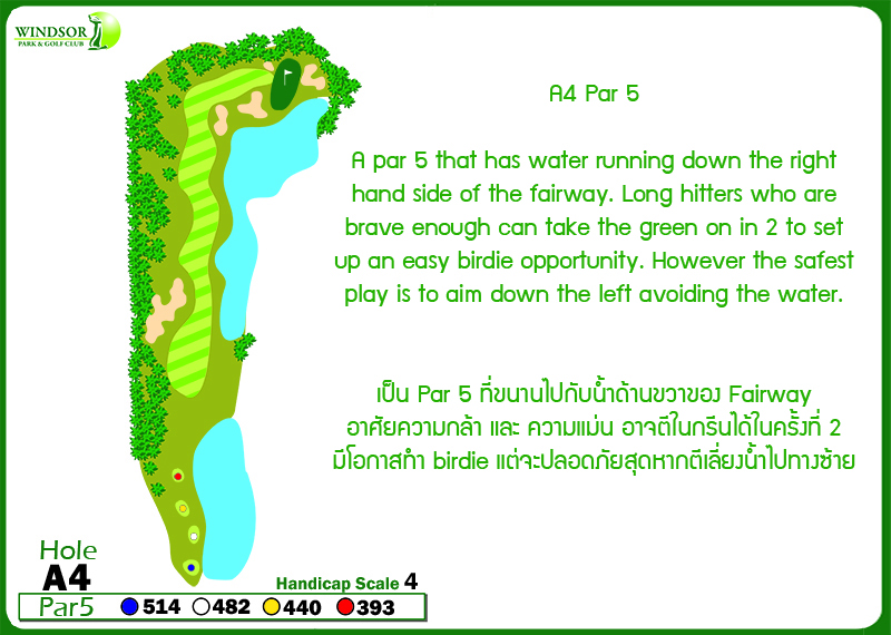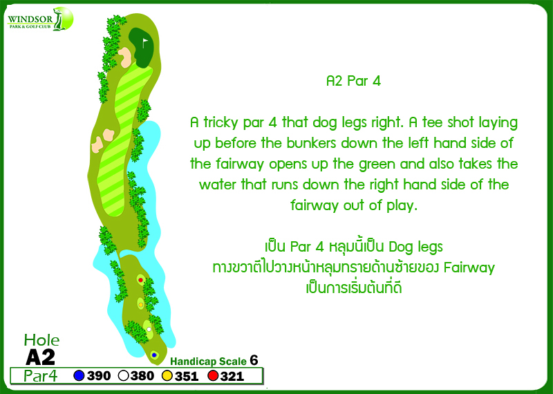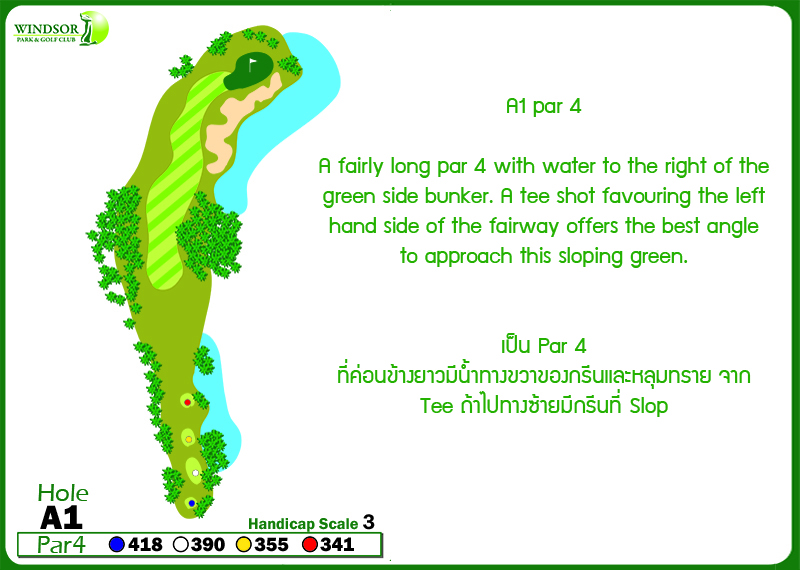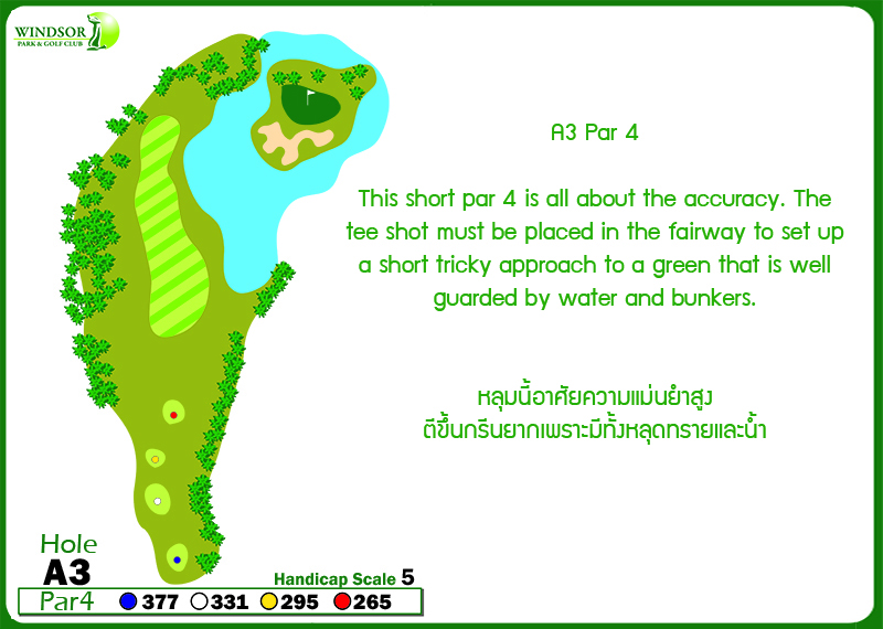 - ระยะรวม (Total Yards): 3,190 หลา (จากหมุดขาว)