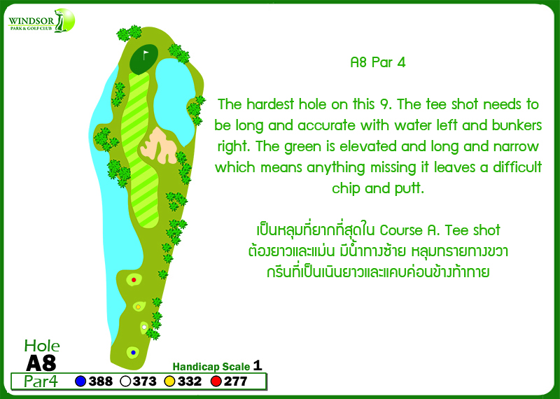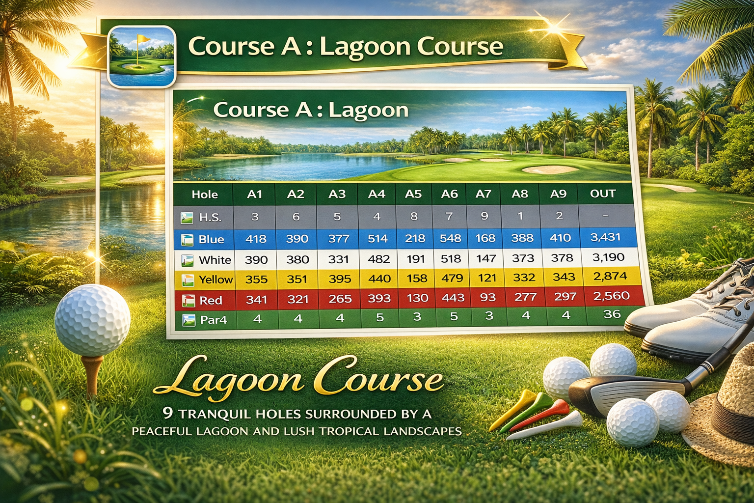 Course A หรือที่รู้จักในชื่อ Lagoon Course เป็นคอร์สที่เน้นความสวยงามของภูมิทัศน์ริมน้ำ แต่แฝงไปด้วยความท้าทายจากอุปสรรคน้ำที่โอบล้อมในหลายหลุม นักกอล์ฟจะได้ทดสอบทักษะการวางแผนและการควบคุมทิศทางลูกอย่างแม่นยำ เพื่อก้าวข้ามความท้าทายในคอร์สระดับแชมเปียนชิพแห่งนี้